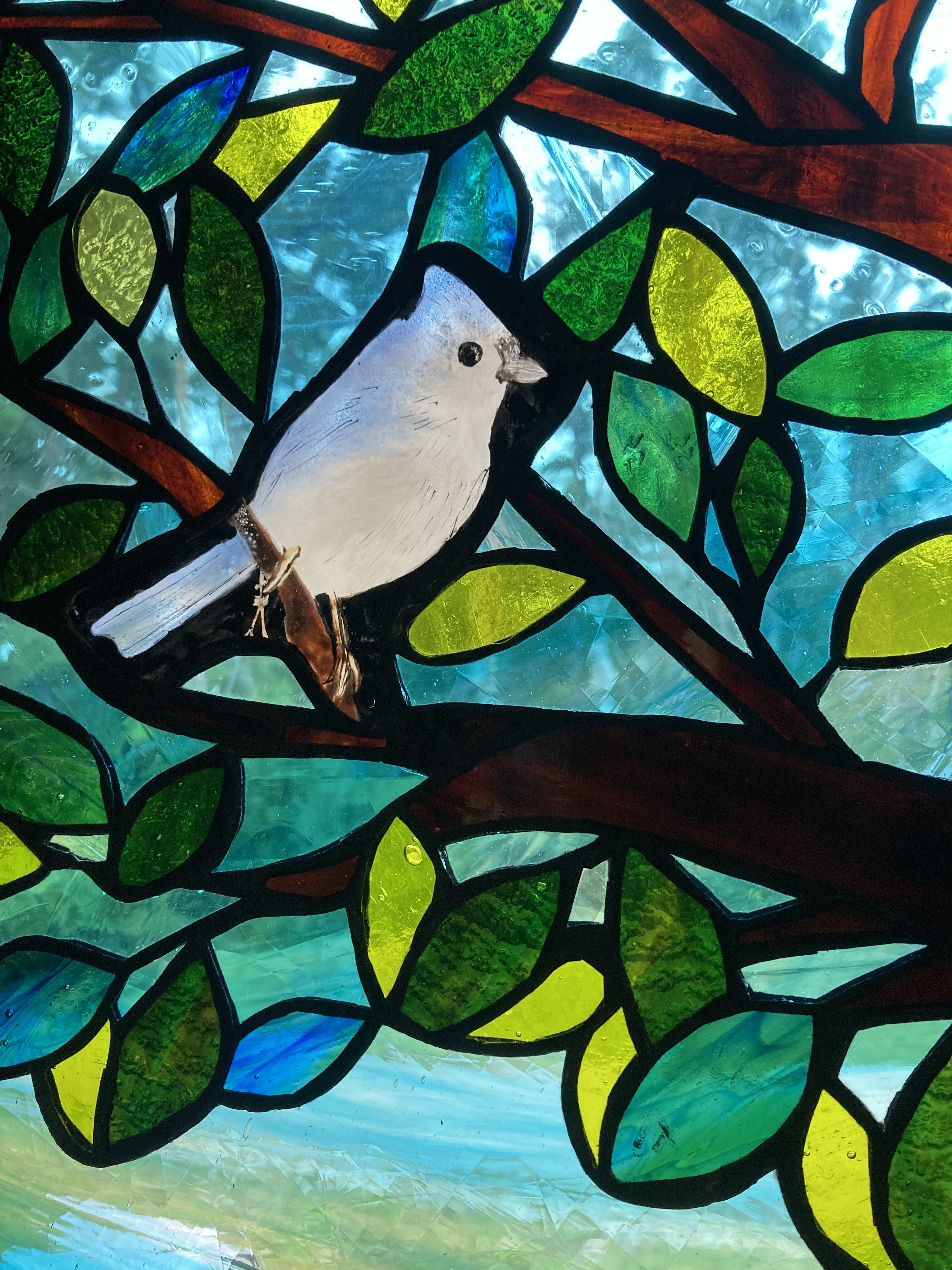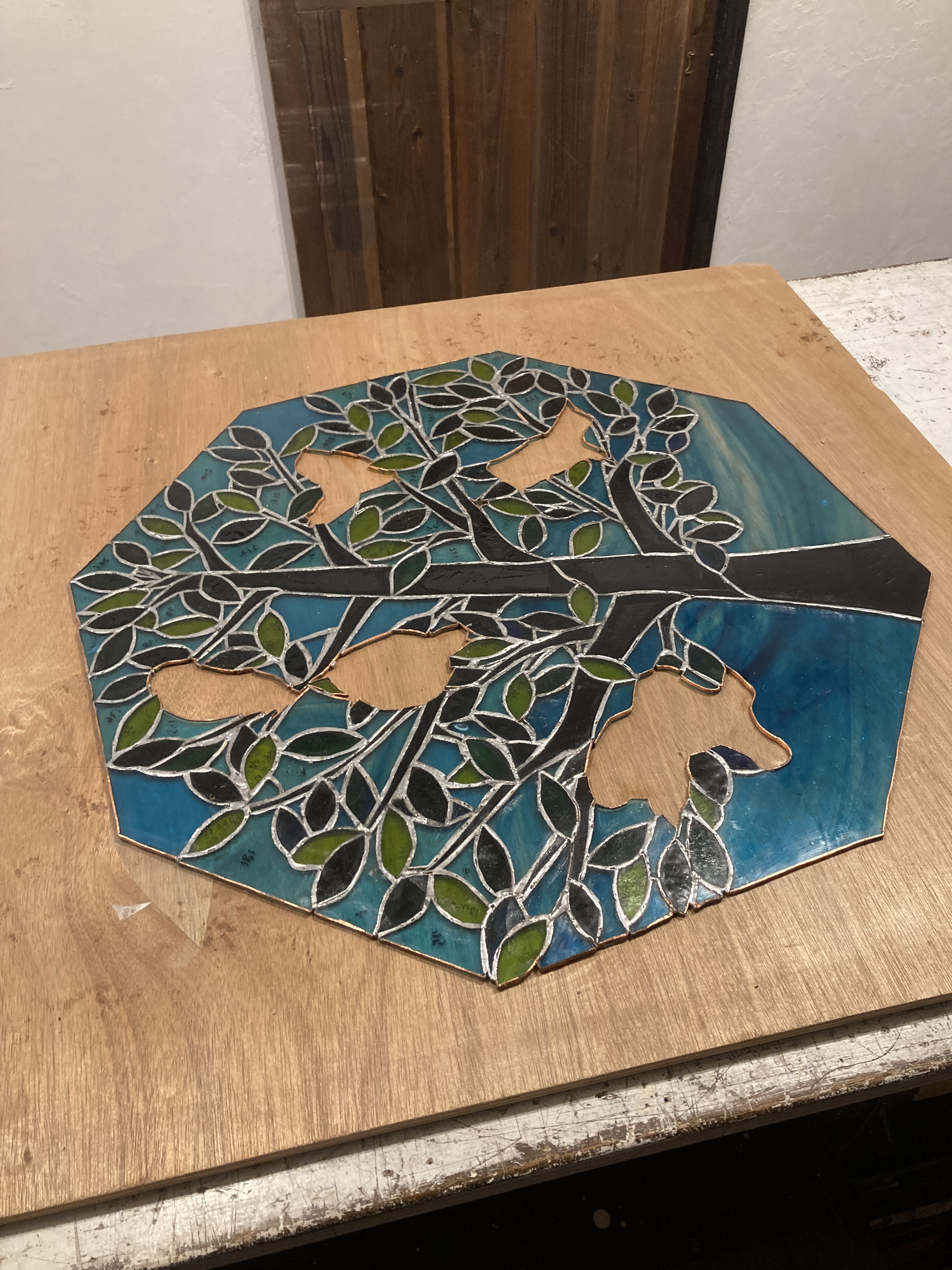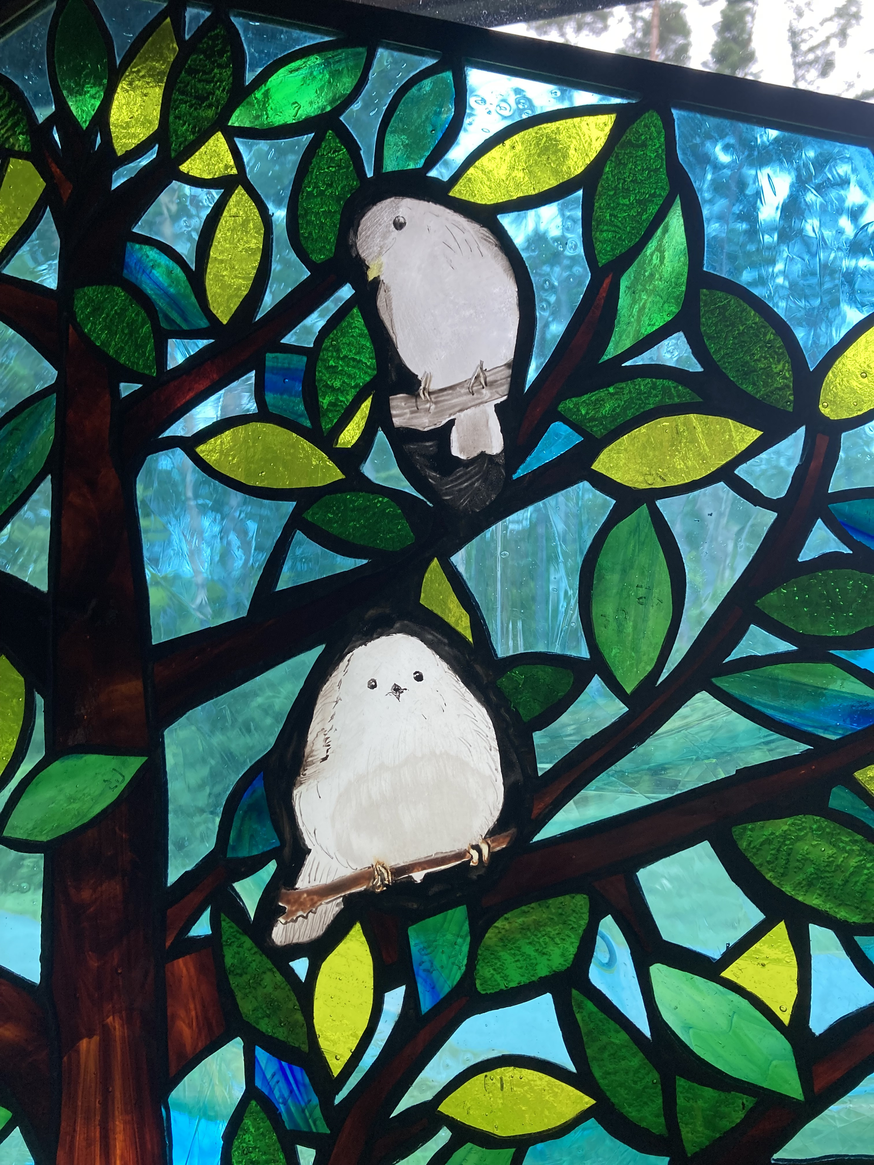 今日は、生徒さん作の「小鳥の木」のステンドグラスをご紹介します。